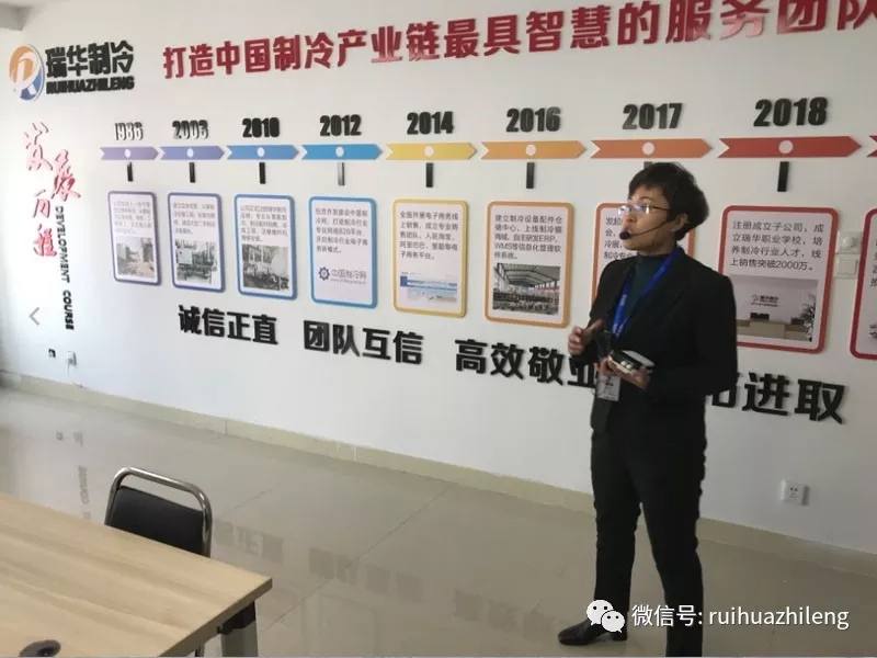 下午2点,所有人员来到河东区瑞华制冷运营中心考察参观,同时举行了《制冷行业产业链资源交流生机大会》,会上瑞华对公司信息化建设及大数据管理做了介绍,共同探讨新时代背景下制冷行业的发展。同时会上由中国制冷网颁发了优质供应商荣誉证书。