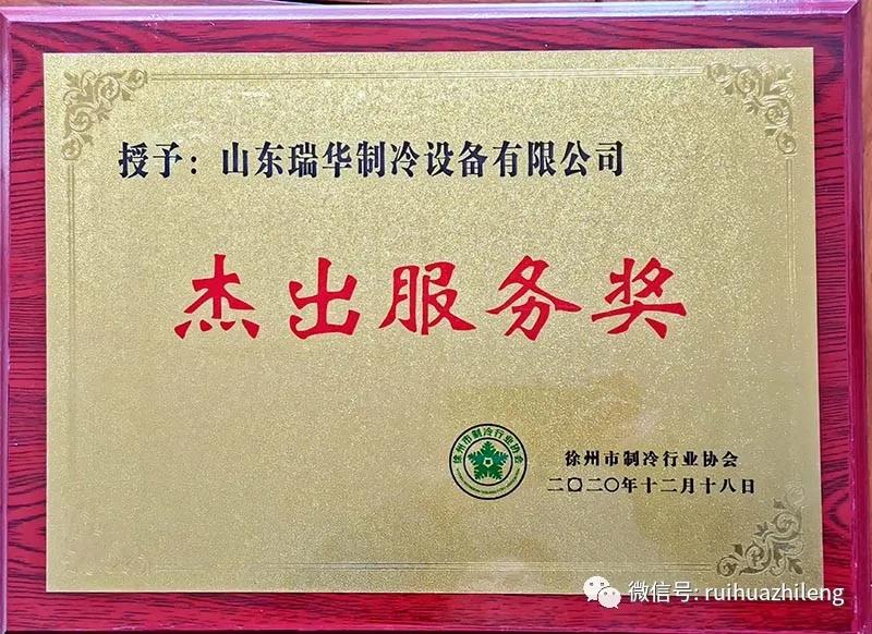 12月18日,参加淮海经济区第五届制冷暖通行业峰会,徐州市制冷协会授予瑞华制冷“杰出服务奖”。