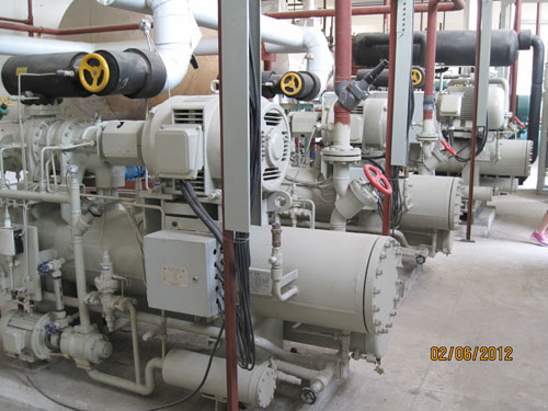 因为螺杆式制冷压缩机在氨制冷系统中与活塞式制冷压缩机比较有结构简单、易损件少、检修周期长、容积效率高、排气温度低、对液击不敏感和可以实现制冷量无级调节等特点而广泛用于国民经济各部门中需要实现人工制冷的场合,如石油、化工、轻工、医药等工业产品的生产、科研方面的低温试验,食品、水产品的低温加工、贮藏及公共场所等大型建筑的空气调节等。