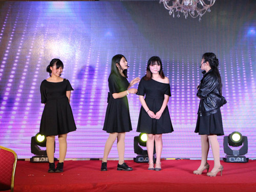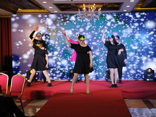 销售二部的美女们为我们惊艳开场帅哥美女组合的主持人团队