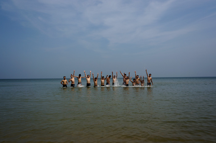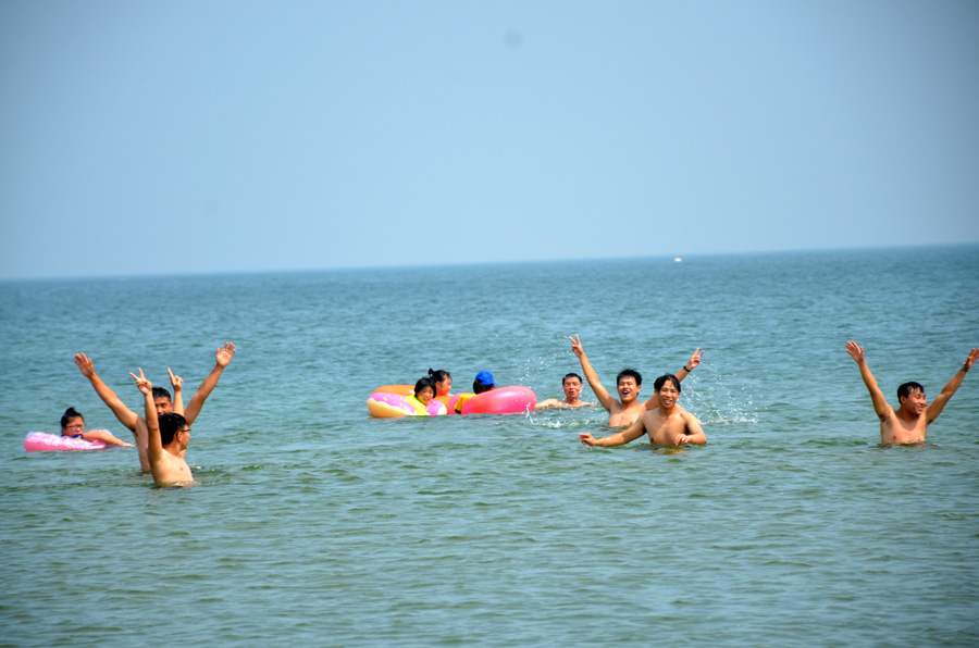 晚上我们下榻在海边的辅特戴斯酒店,处于安全考虑,当晚我们酒酣耳热之后并没有外出活动。而是在第二天才下海,尽情的玩耍了一番。下午驱车前往青岛,先后来到五四广场、石老人、栈桥等景区。接下来我们就通过一组组的照片来欣赏一下我们瑞华人的风姿吧!