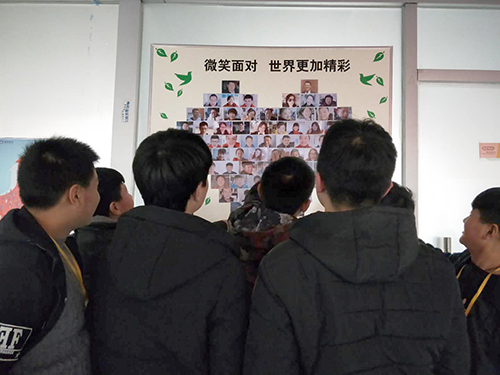 每次从笑脸墙面前经过。大家就停下脚步欣赏一番。看到笑脸墙中自己灿烂的笑,烦恼很快就被抛到九霄云外,再以激情饱满的状态投入到工作、学习中。