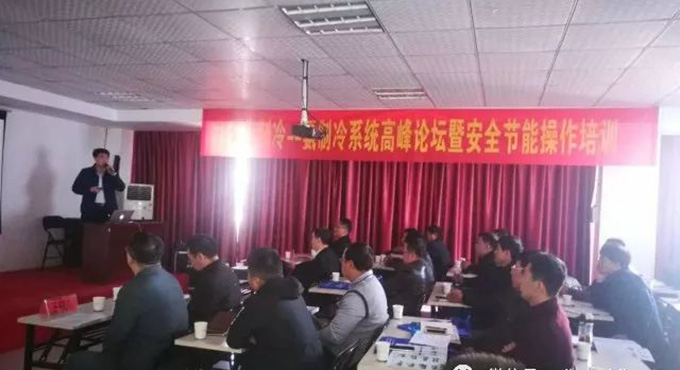 2017年11月。瑞华制冷联合烟台冰轮举办氨制冷系统高峰论坛暨安全节能操作培训会议。