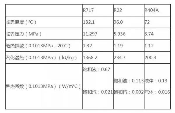 1、氨制冷剂(R717)和氟制冷剂(R22和R404A)的性质对比