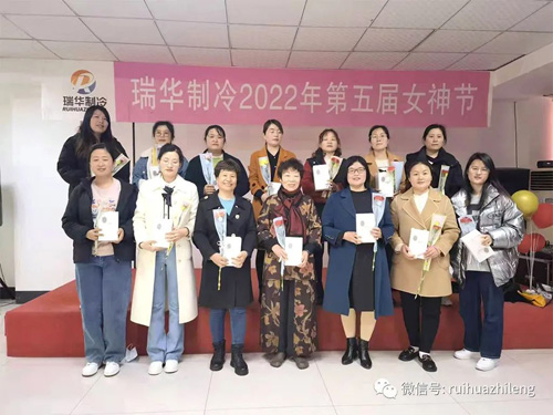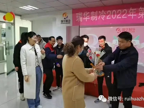2022年3月8日,女神节,瑞华制冷迎来第五届女神节。所有男士们聚在一起,为公司所有女神送上鲜花及礼物。同时也迎来第五届瑞华制冷巾帼红旗手与巾帼时代先锋评选,有三位女神获奖,并为她们举行颁奖仪式。