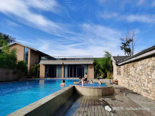 一出房间正面就是一个大泳池,孩子们在泳池中嬉闹玩耍,过足了瘾。