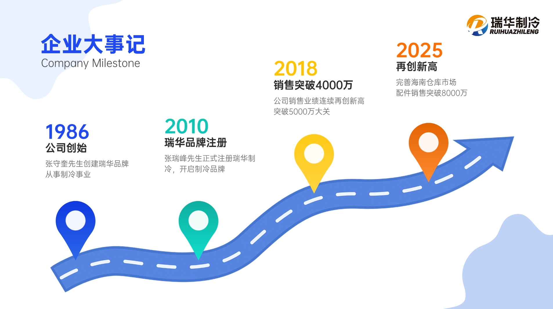 山东瑞华制冷设备有限公司成立于1986年,注册于2010年,是一家集制冷工程设计、冷库建设、设备安装、氨氟及二氧化碳制冷配件销售及维保服务于一体的综合性制冷企业。凭借三十多年的行业经验,瑞华制冷已发展成为国内领先的制冷解决方案提供商,是亚太区领先的智慧冷链技术整合服务商,业务版图覆盖30个中国省域,服务5万余家企业级客户,成为行业佼佼者。