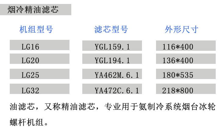 烟台冰轮精油滤芯